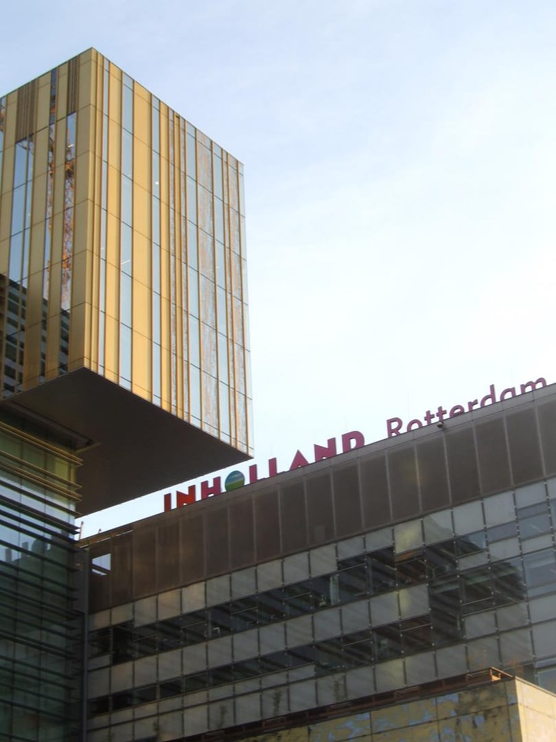 Als gevolg van een sterke groei van de studentenaantallen heeft Hogeschool INHOLLAND Rotterdam een tijdelijke huisvesting van ca. 5.000 m2 (het zgn. DOK) moeten realiseren tegenover het hoofdgebouw, op de Kop van Zuid.